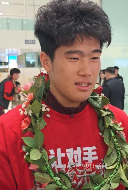 下午3时30分,U23国足队员胸戴花环,走出到达口,在热烈欢呼声中,和等候已久的球迷们打招呼,并给球迷们签名。队员彭啸告诉极目新闻记者,他感受到了前来接机的球迷的热情,“大家太热情了。非常感动!”